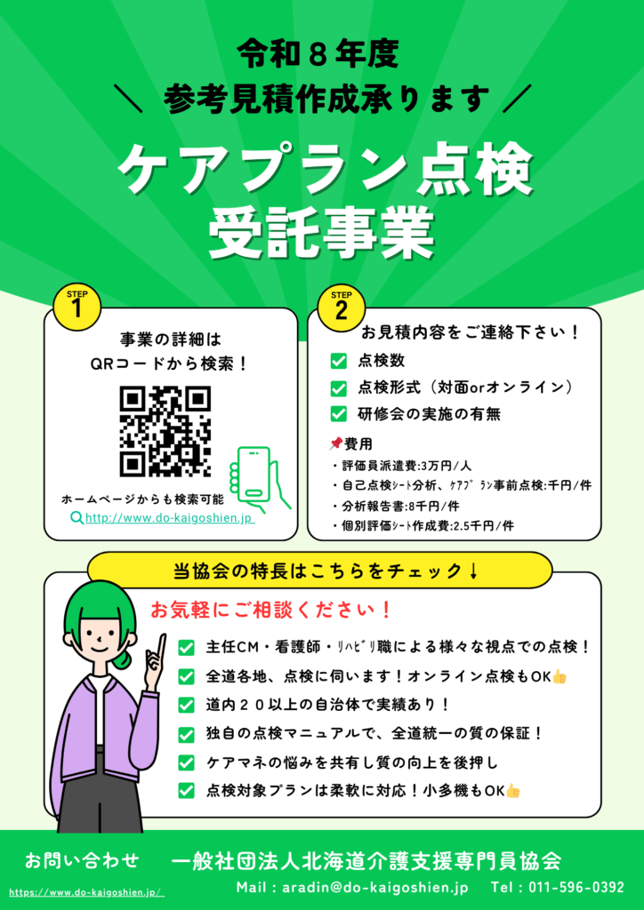 令和8年度のケアプラン点検受託事業の参考見積を承っておりますので、ぜひご検討ください。
