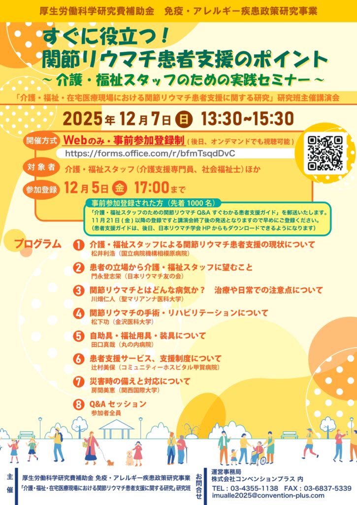 「すぐに役立つ!関節リウマチ患者支援のポイント」実践セミナーのお知らせ