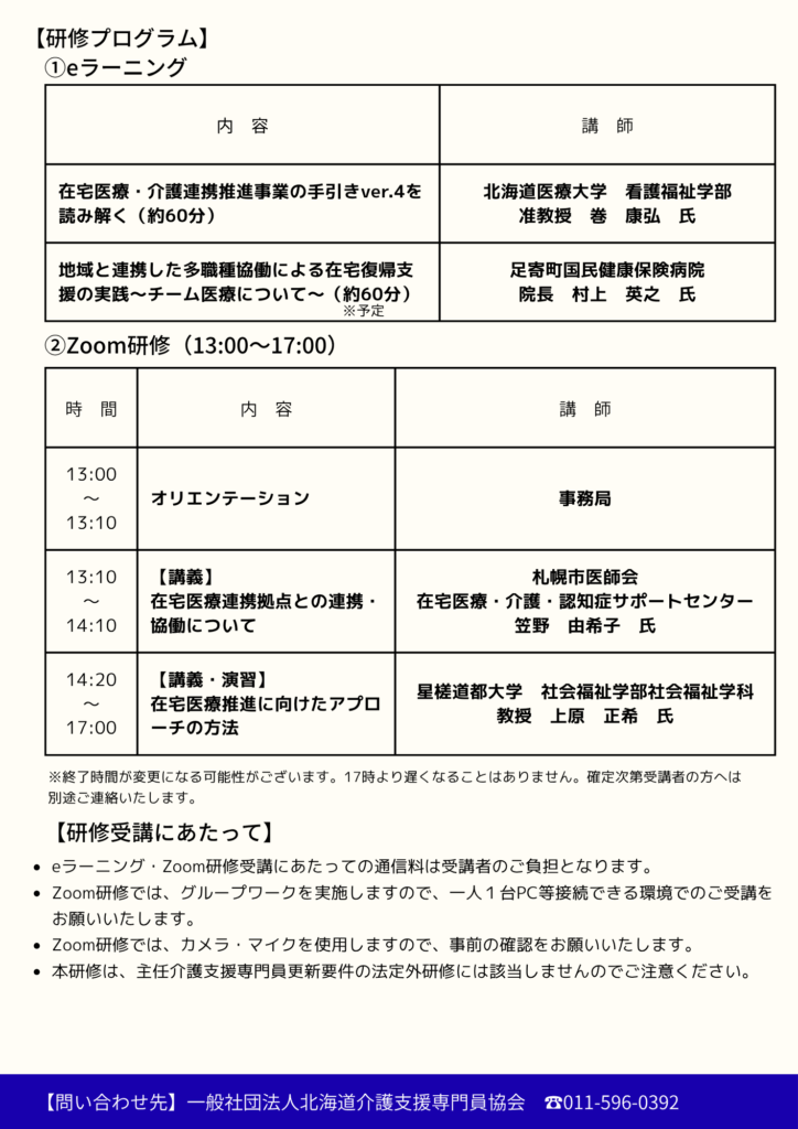 - 本研修は主任介護支援専門員更新要件の法定外研修には該当しません。